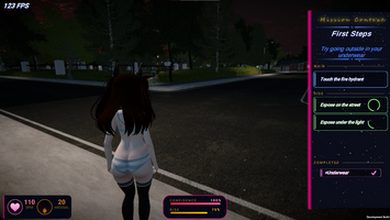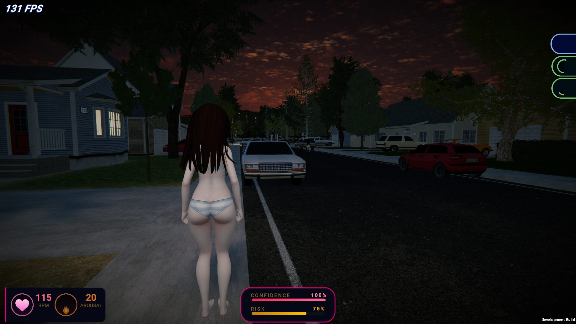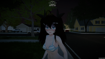 If Sabia gets caught, the screen will go black and she will wake up in her bed -- just a nightmare. I mostly did it this way to maintain a level of consistency even if she gets caught. I want the game to have a lighter tone than some other ENF games, so I felt like a "waking up from a bad dream" scenario would tie perfectly into resetting after a fail without getting too extreme with the consequences. I'm not much of a fan of humiliation.